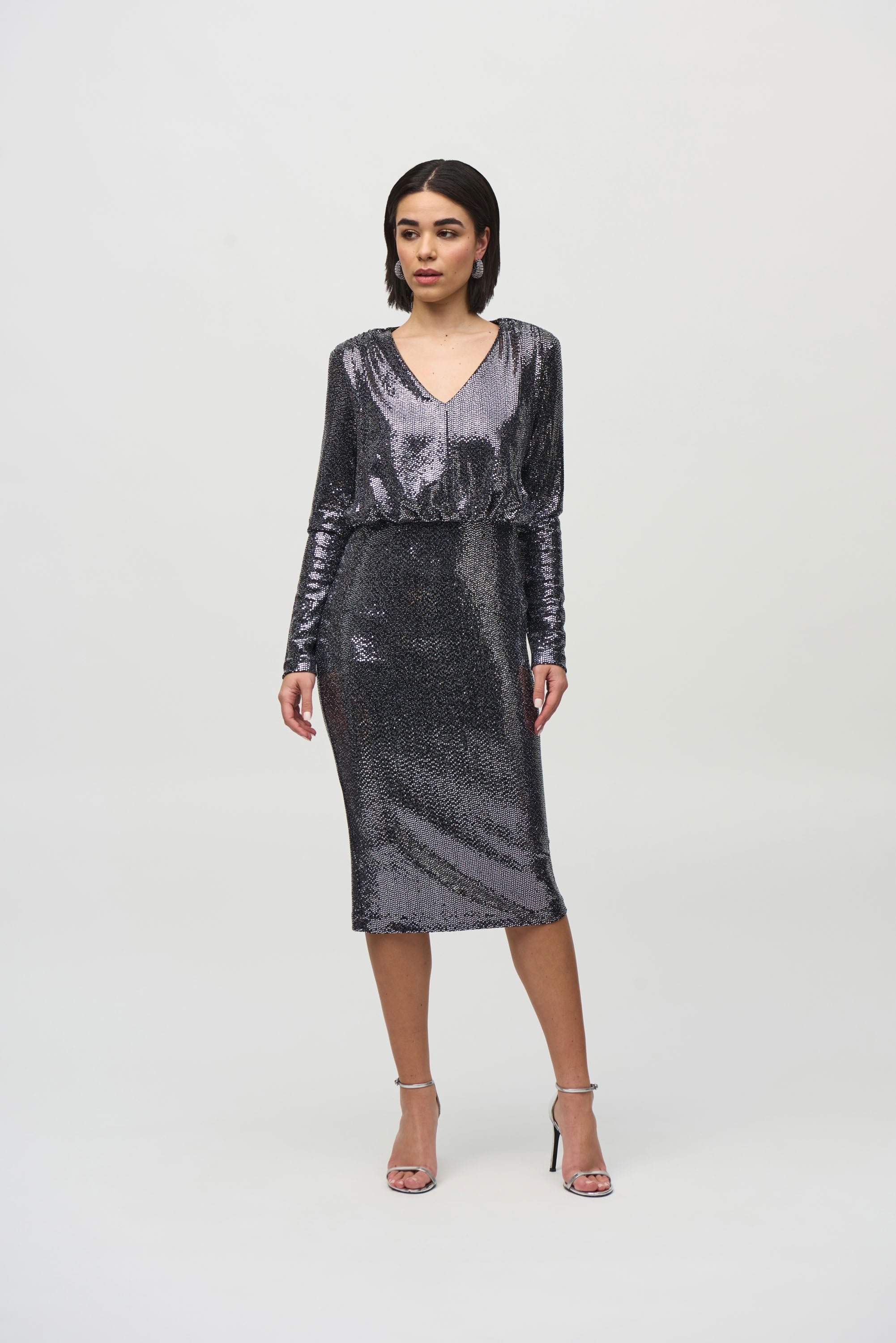 Sequined Sweater Knit Turtleneck Sheath Dress (254932)