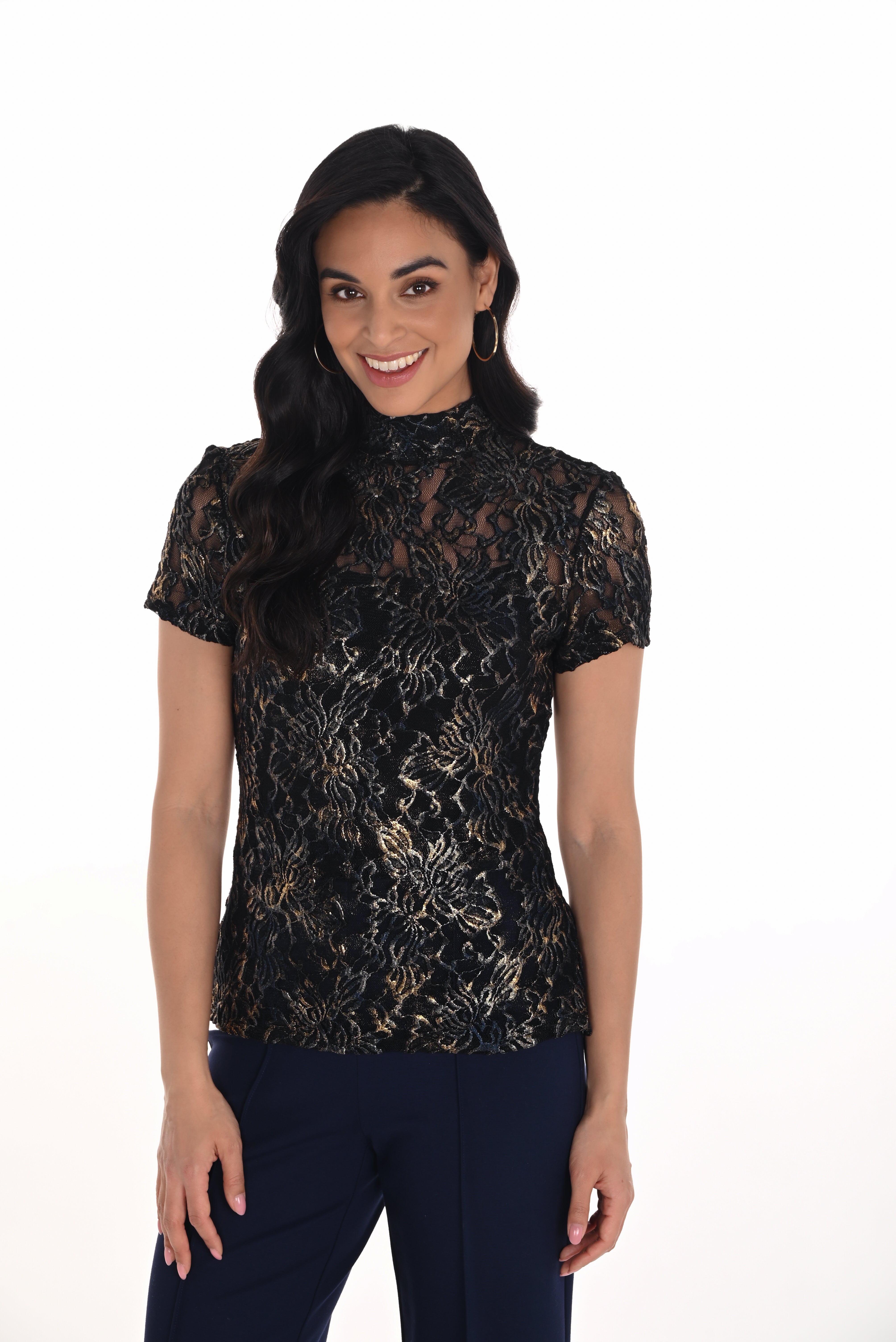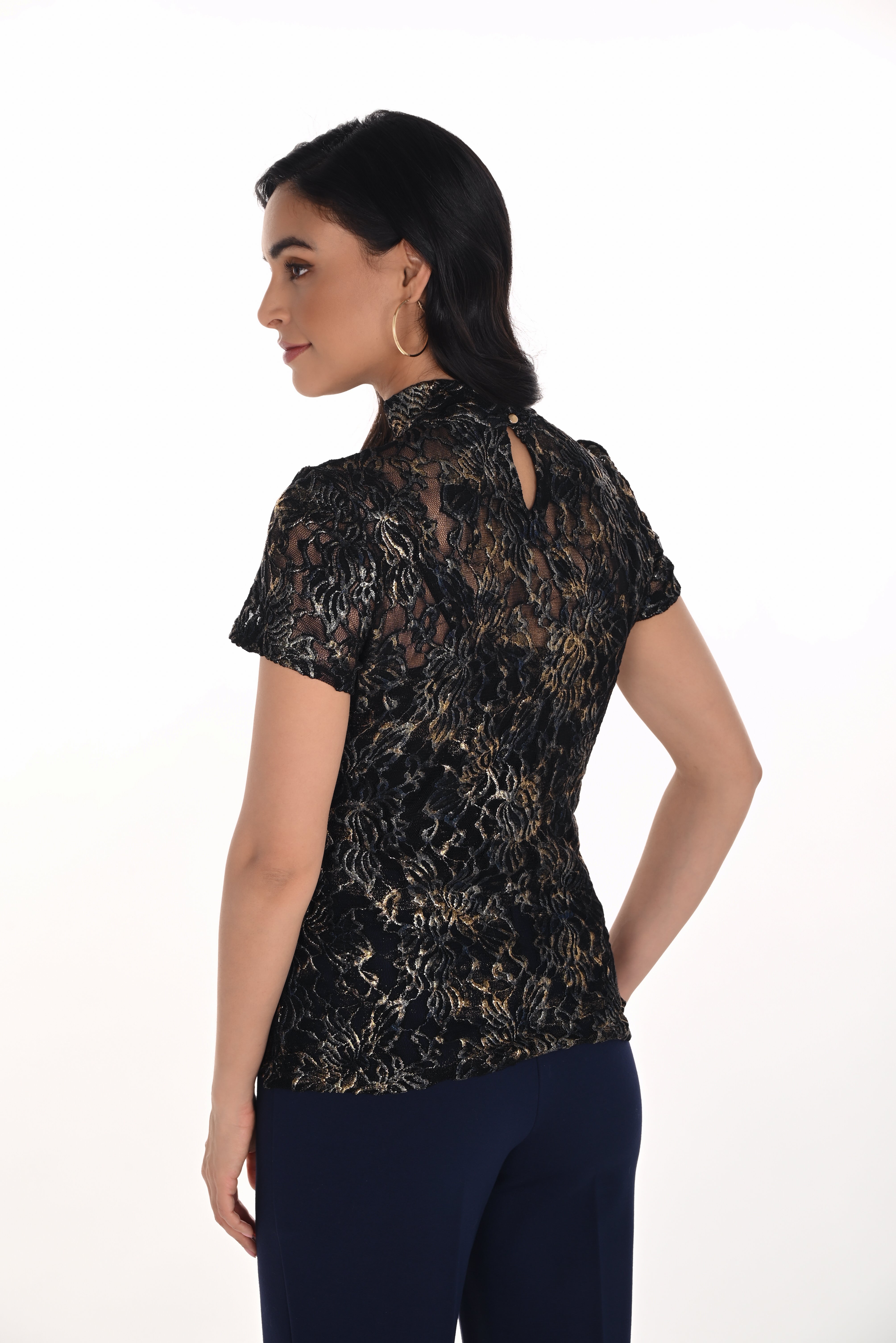 Silky Knit Abstract Print Fitted Wrap Top (254218)