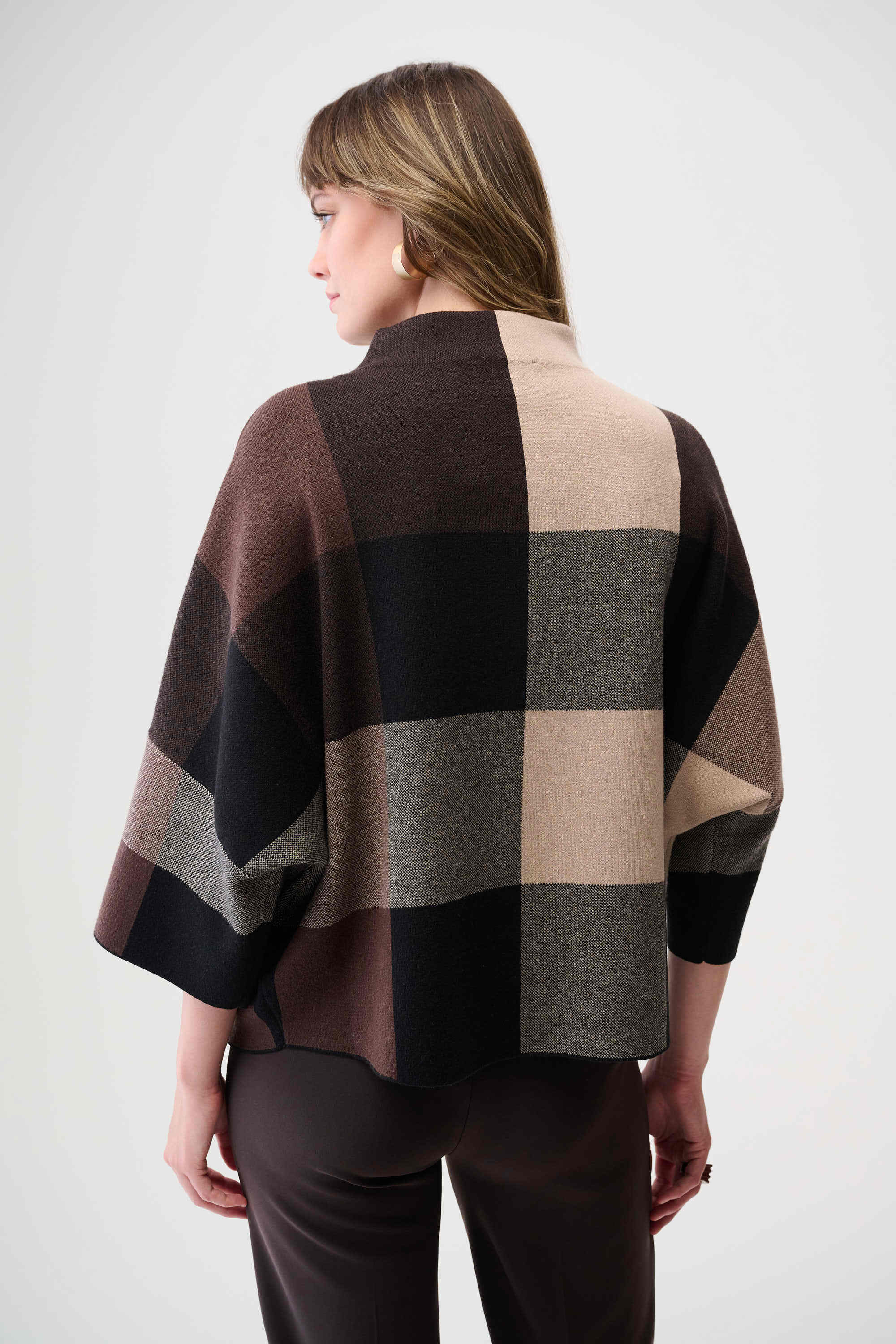 Brushed Viscose Plaid Print Boxy Sweater with Funnel Neck (254976)