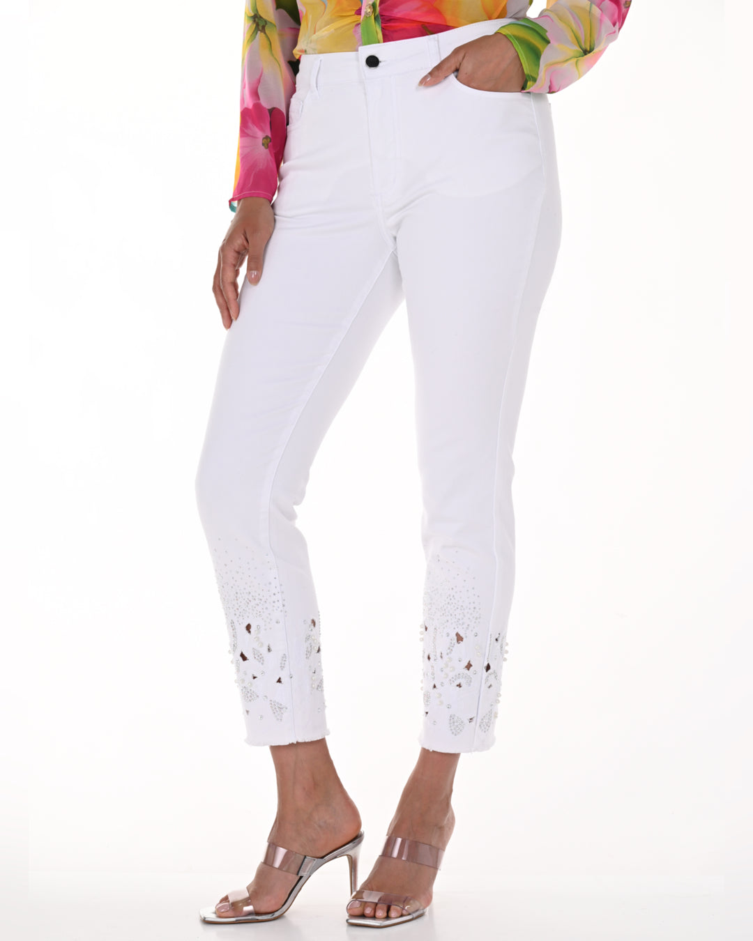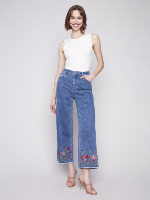 Wide Leg Jeans with Floral Embroidered Hem (C5654431A)