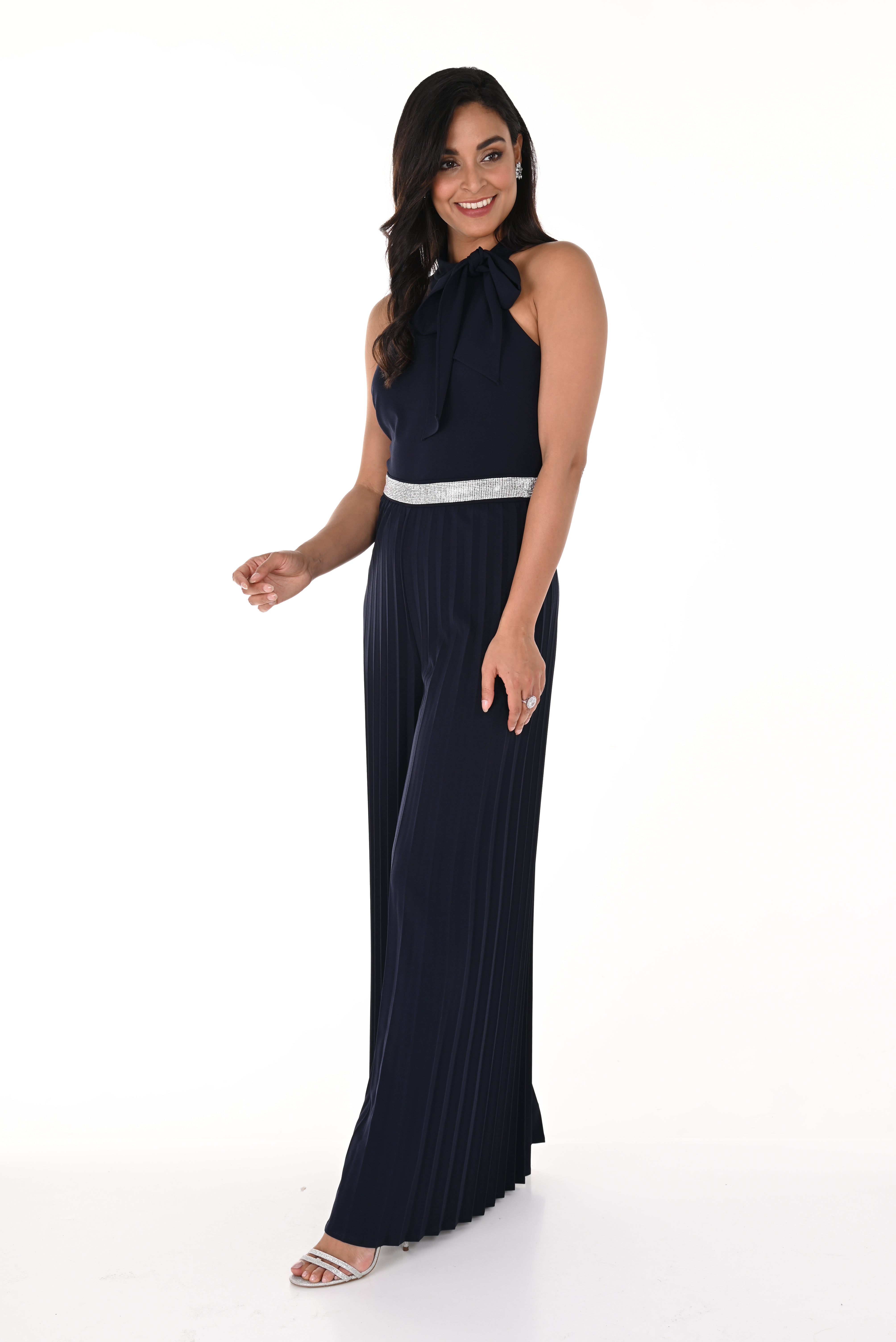 Woven Wide Leg Jumpsuit with Rhinestone Detail (JR1051)