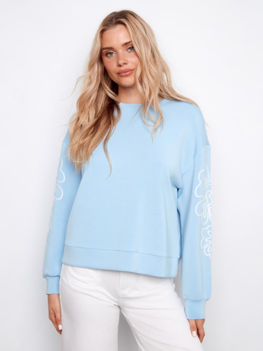 Long Sleeve Scuba Top With Soutache Detail (C1431)