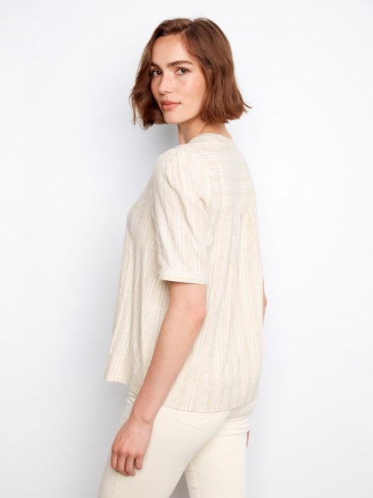 Printed Linen Blend Tie-Front Blouse (C4271)
