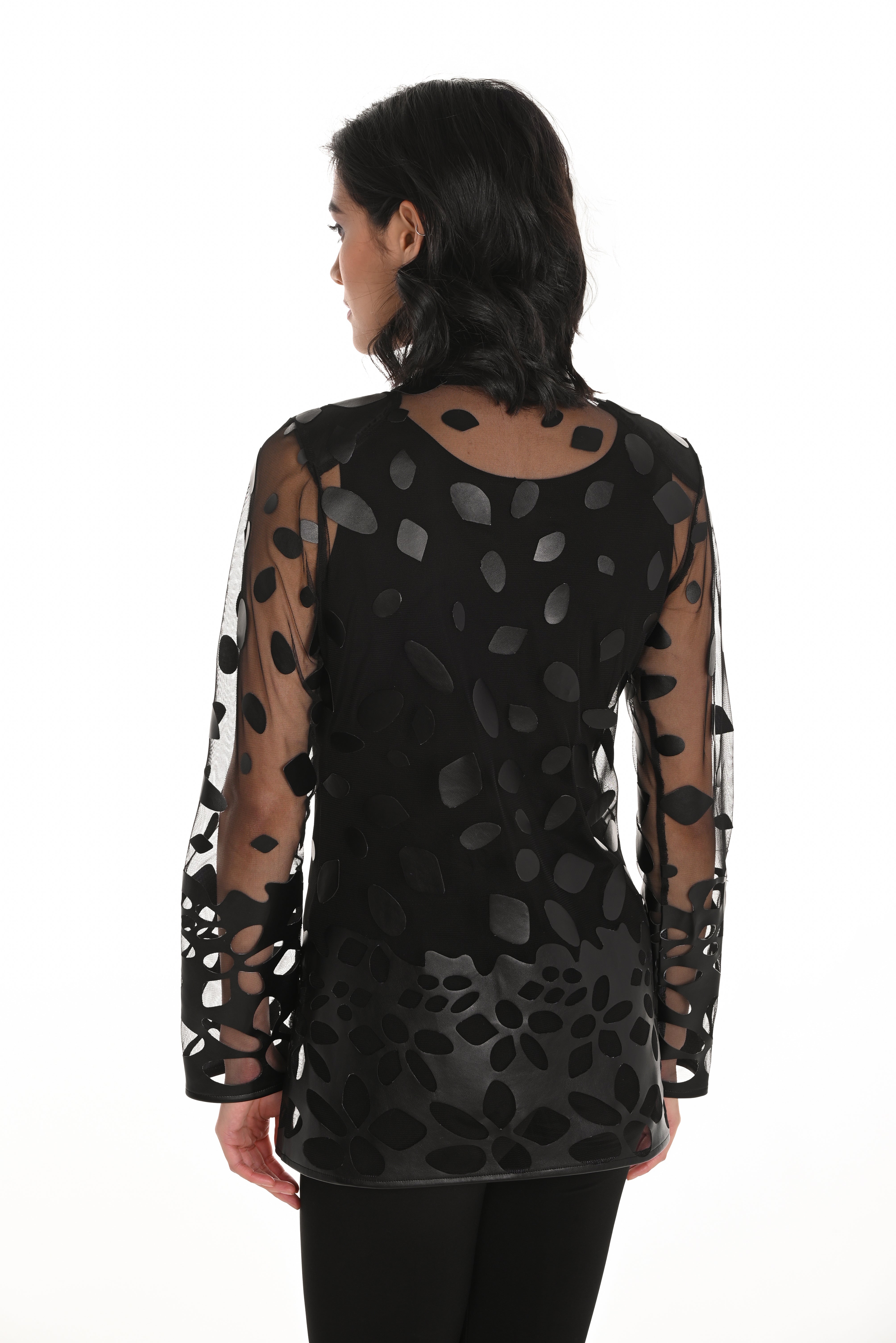 Stretch Poplin Boxy Blouse with Rhinestones (254924)