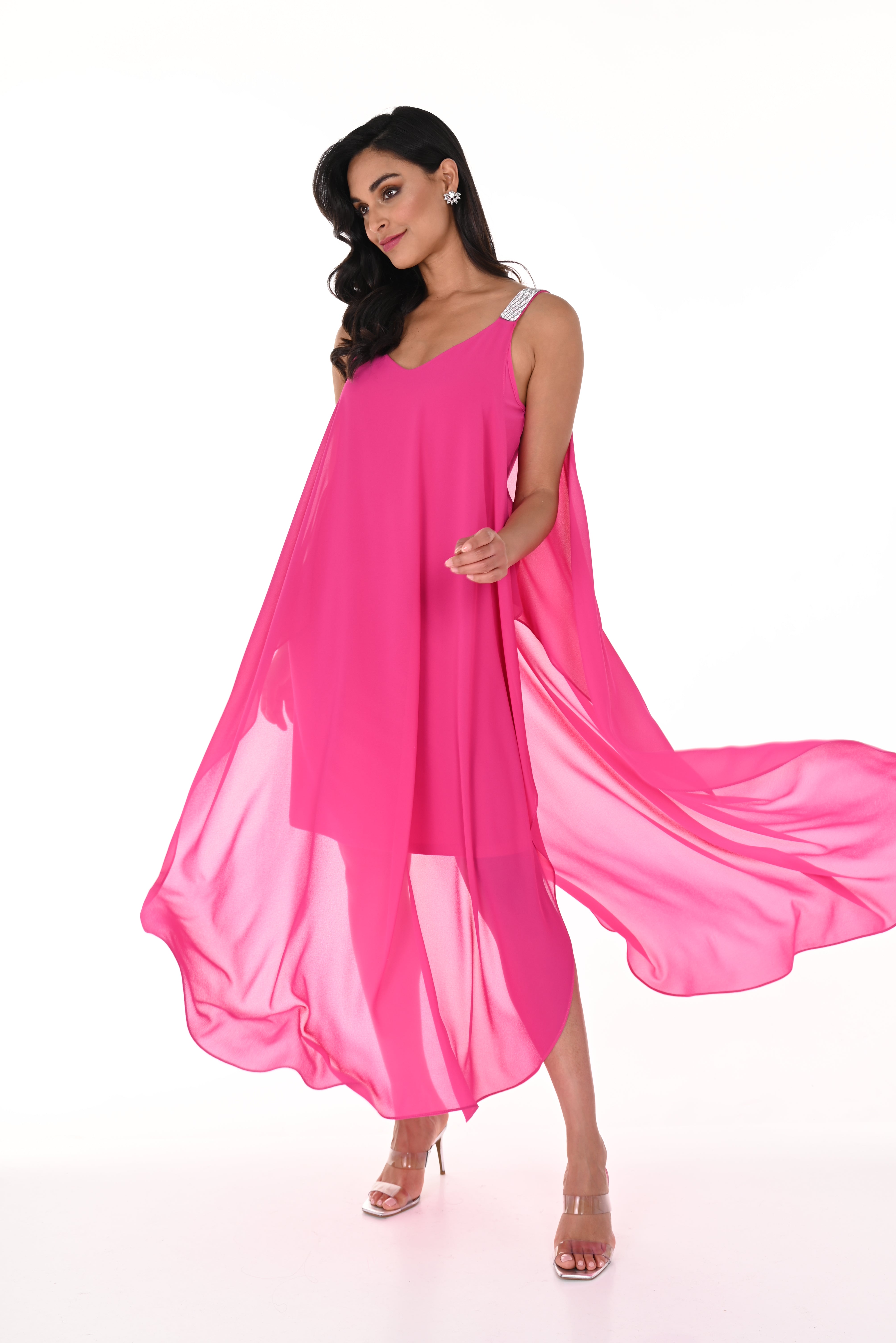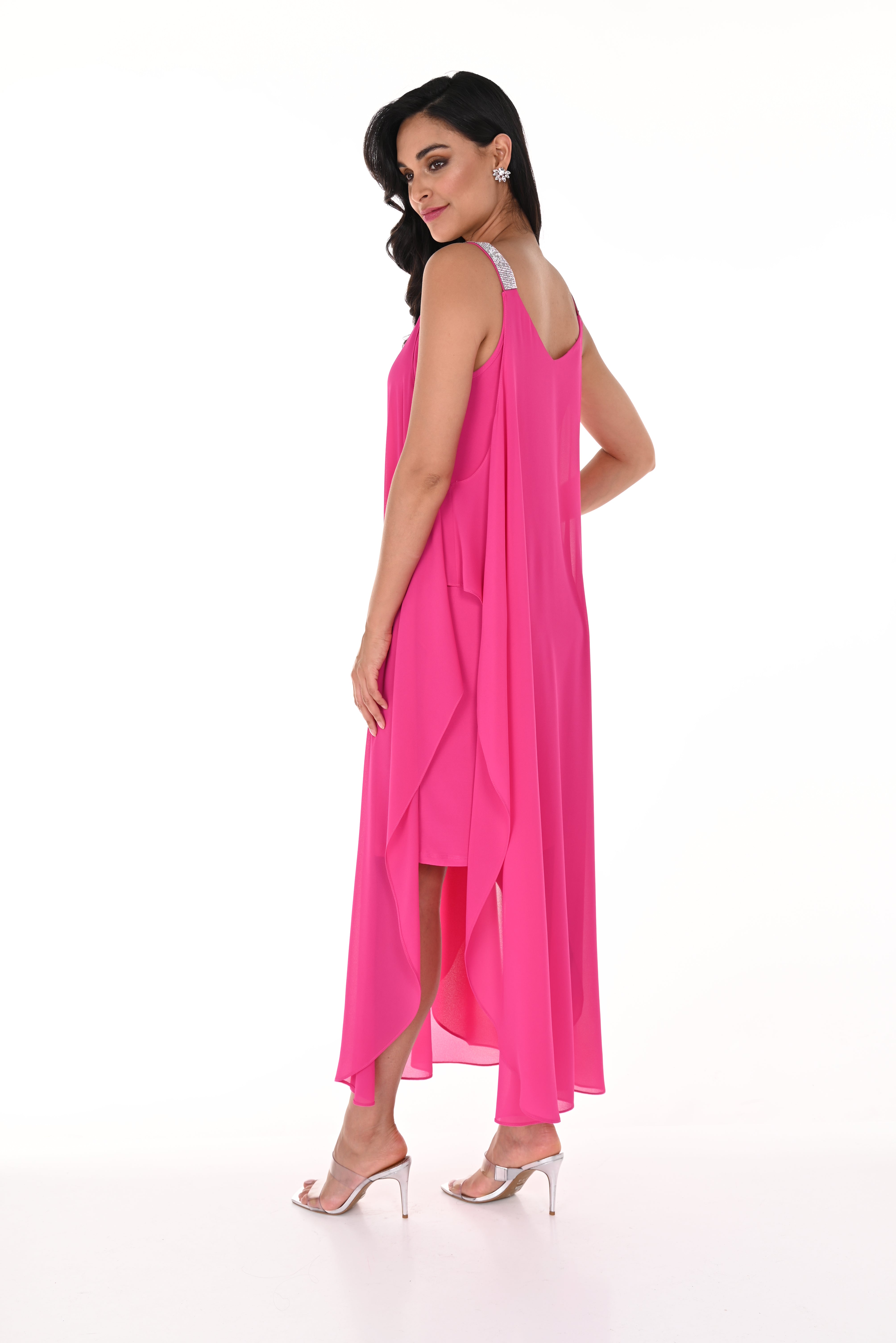 Silky Knit And Chiffon Cape Dress (JR1116)