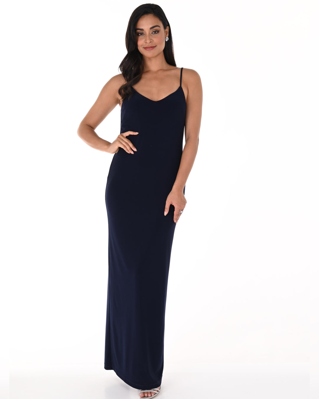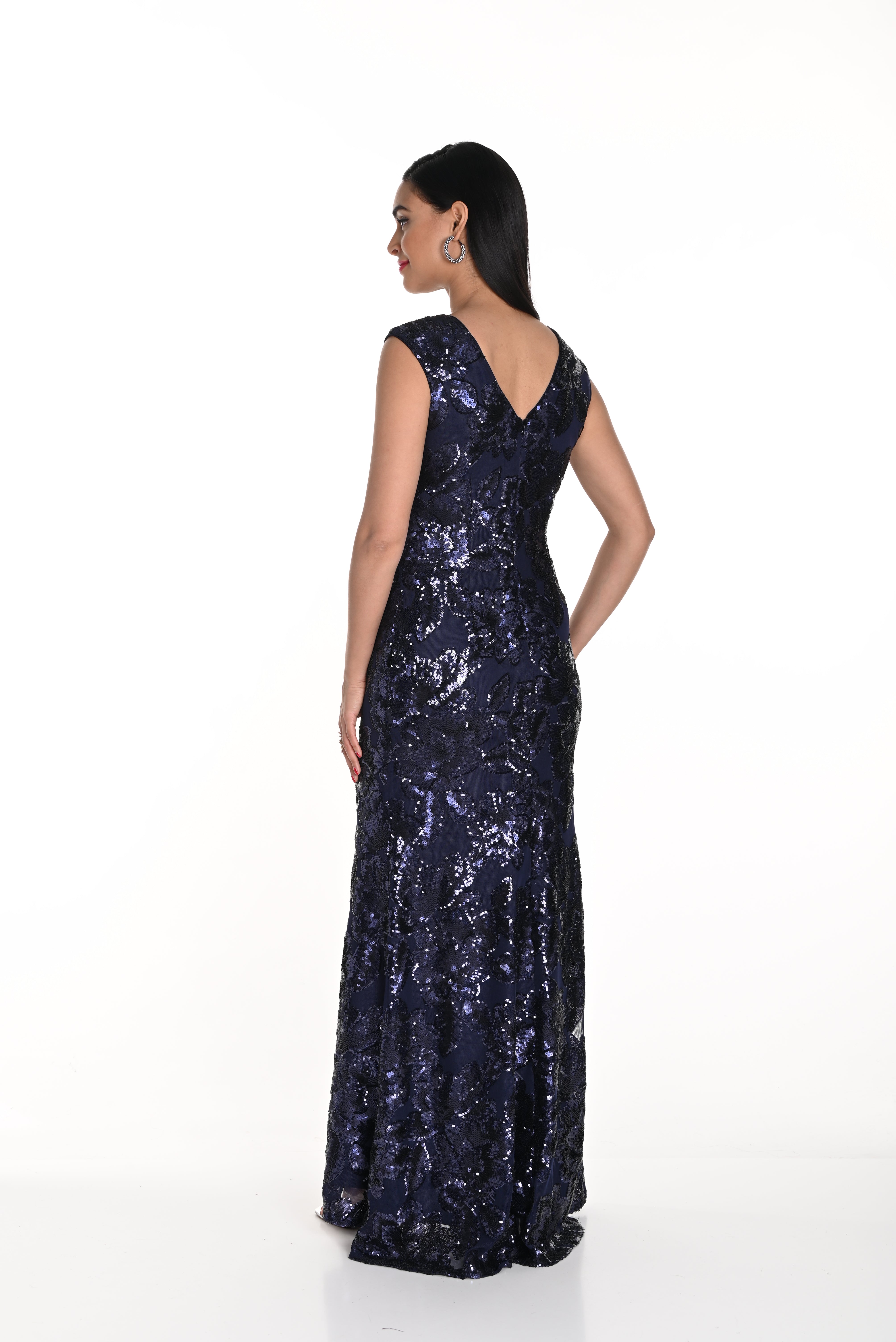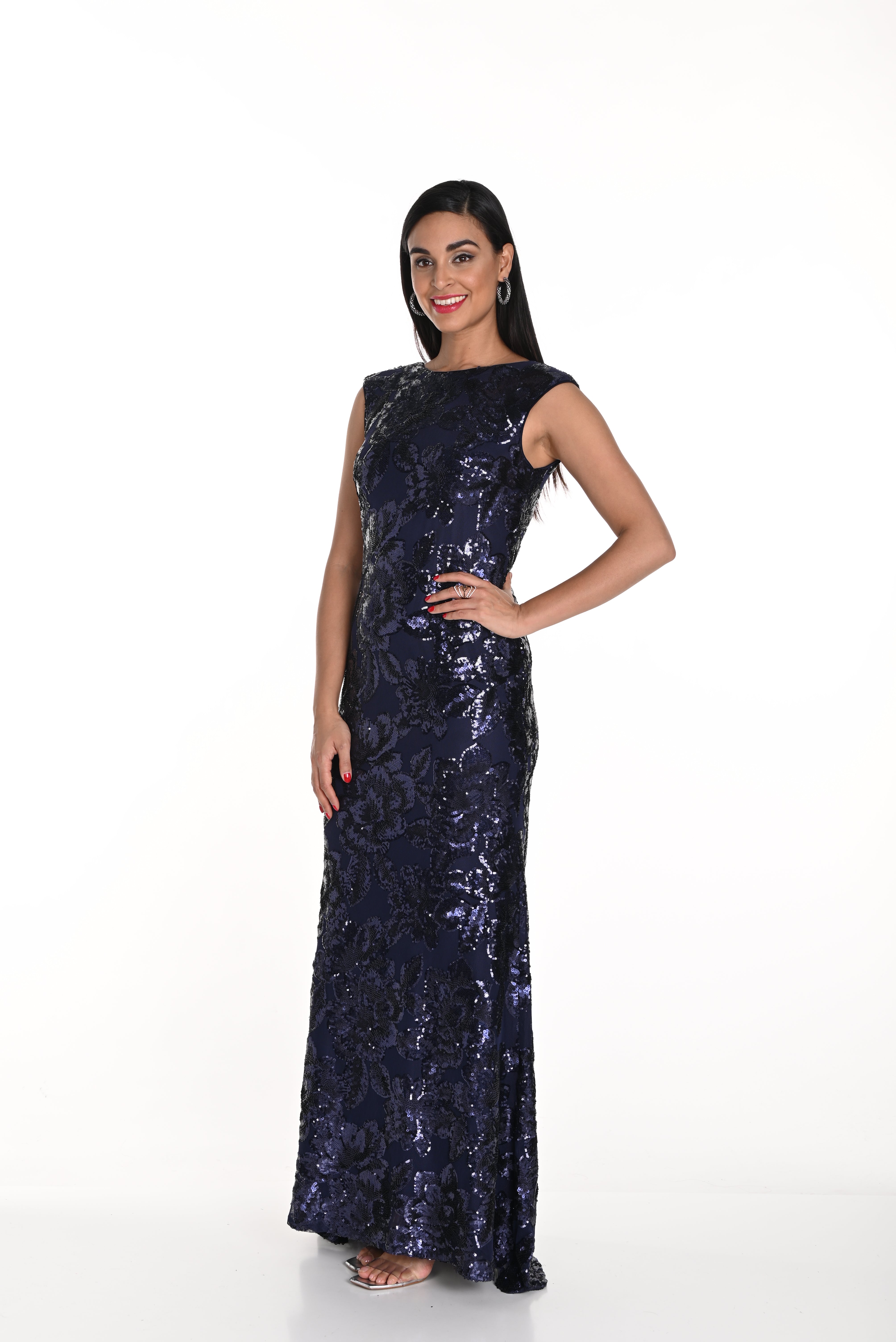 Sequin Overlay & Spaghetti Strap Maxi Dress (FL0115)