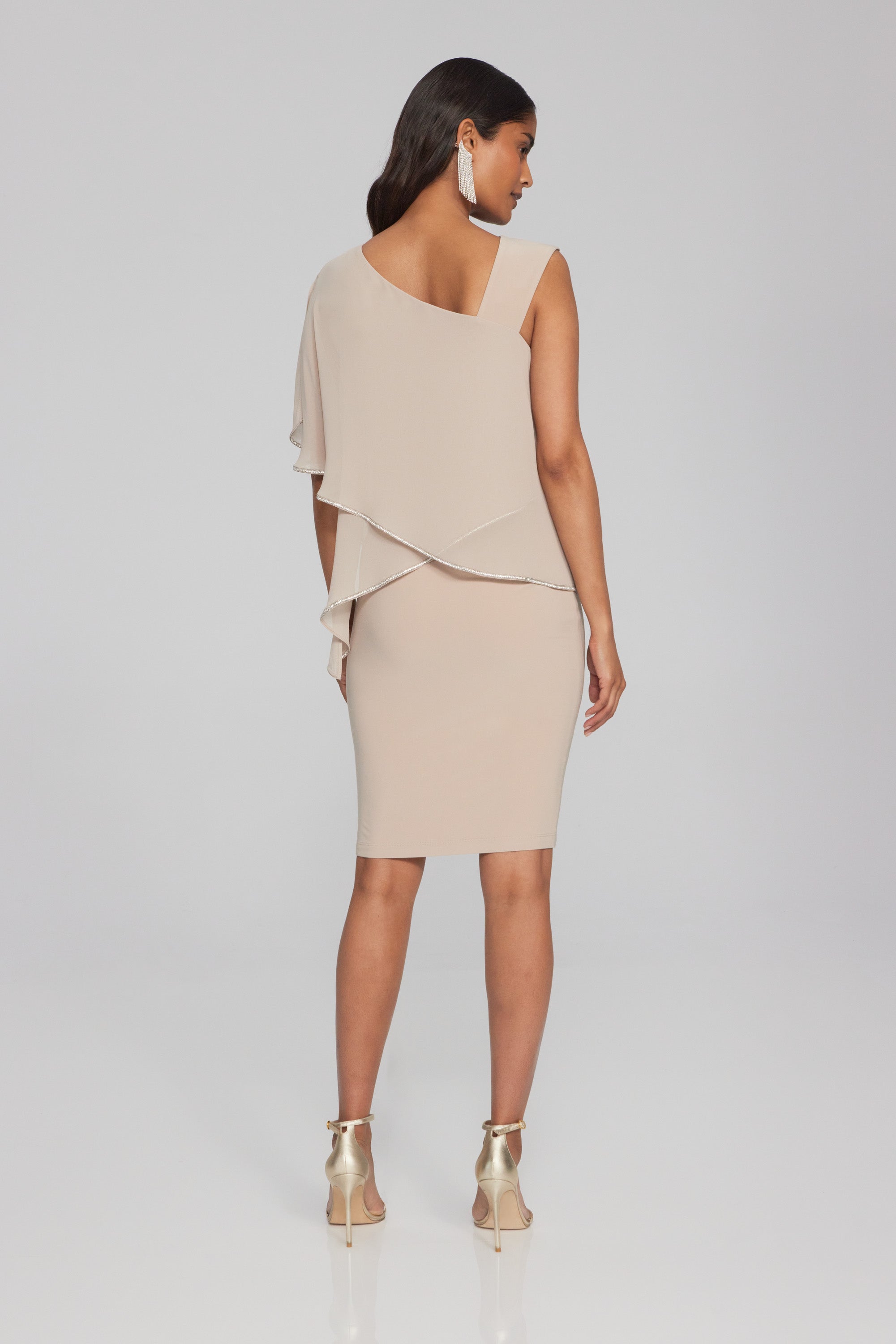 Silky Knit and Chiffon Asymmetrical Sheath Dress (JR1102)