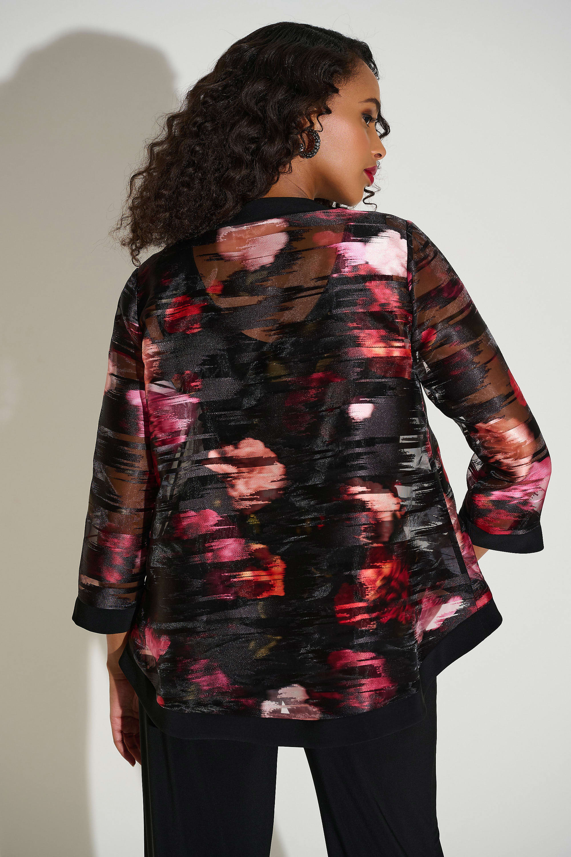 Organza & Silky Knit Floral Swing Jacket (JR1147)