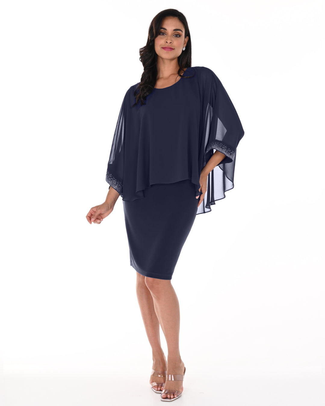 Short Stretch Crepe Sheath Dress with Embellished Neckline (AE0040)