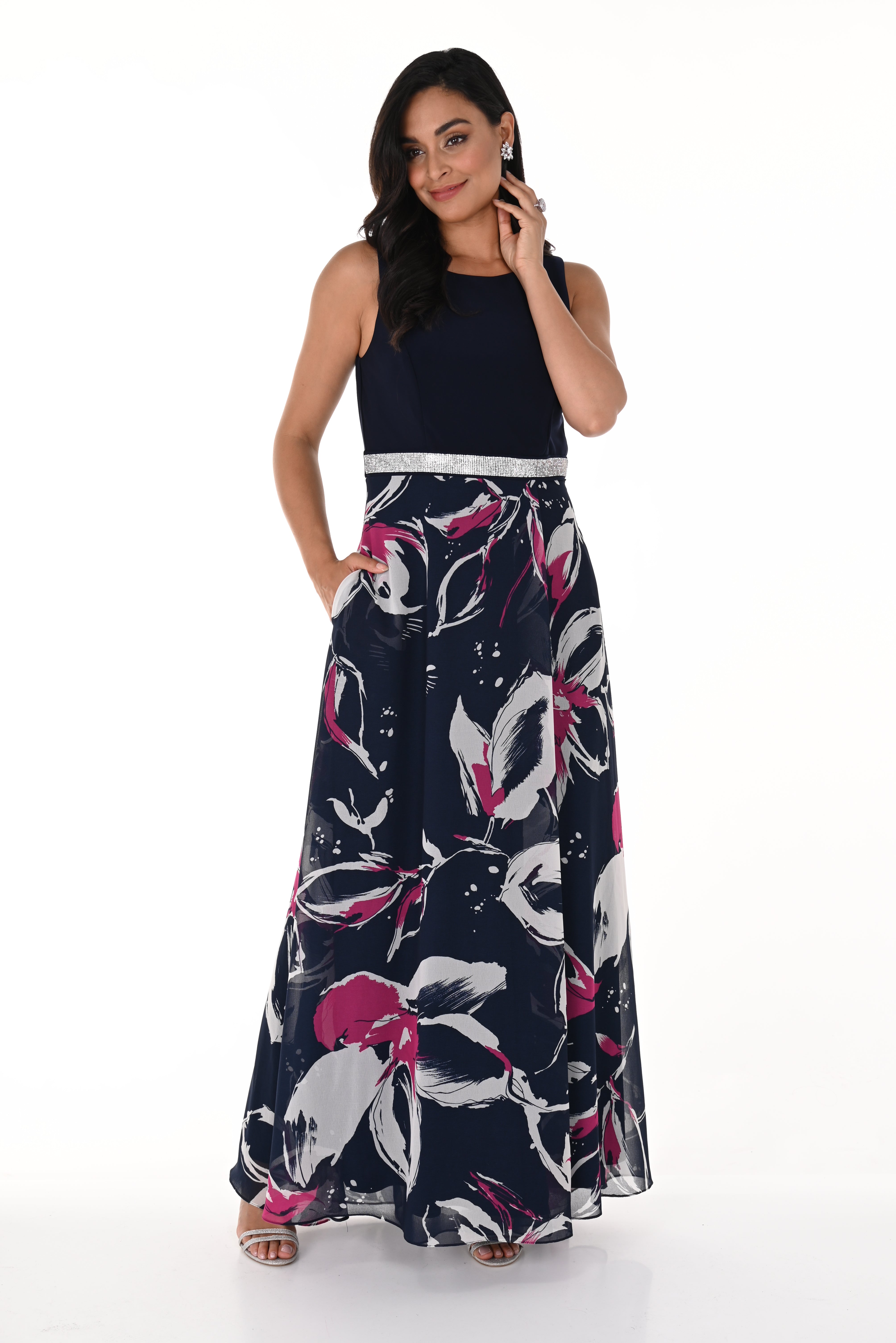 Midnight & Fuchsia Sleeveless Dress (FL0112)