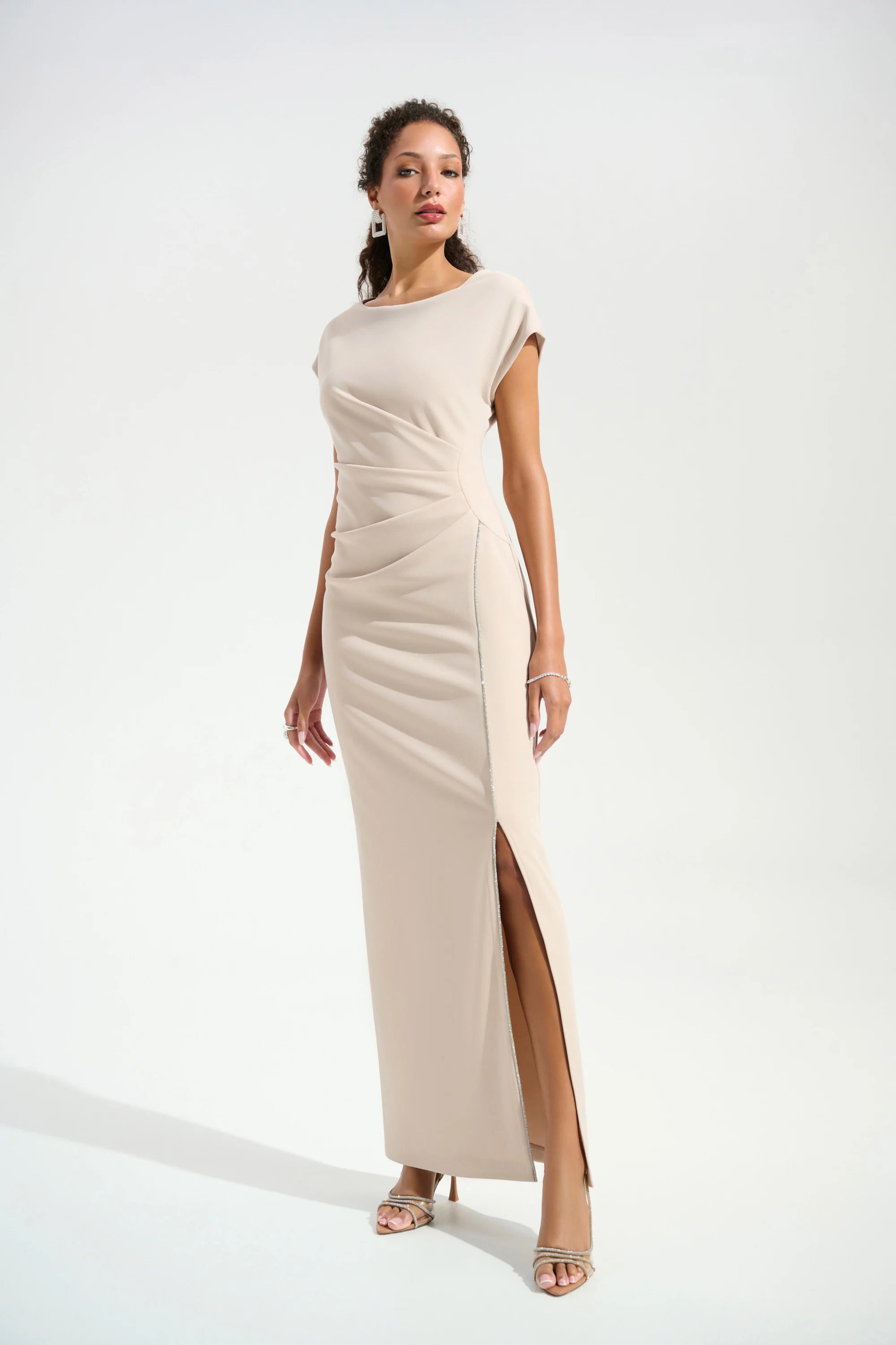 Scuba Crepe Sheath Gown With Rhinestones Piping (JR1056)