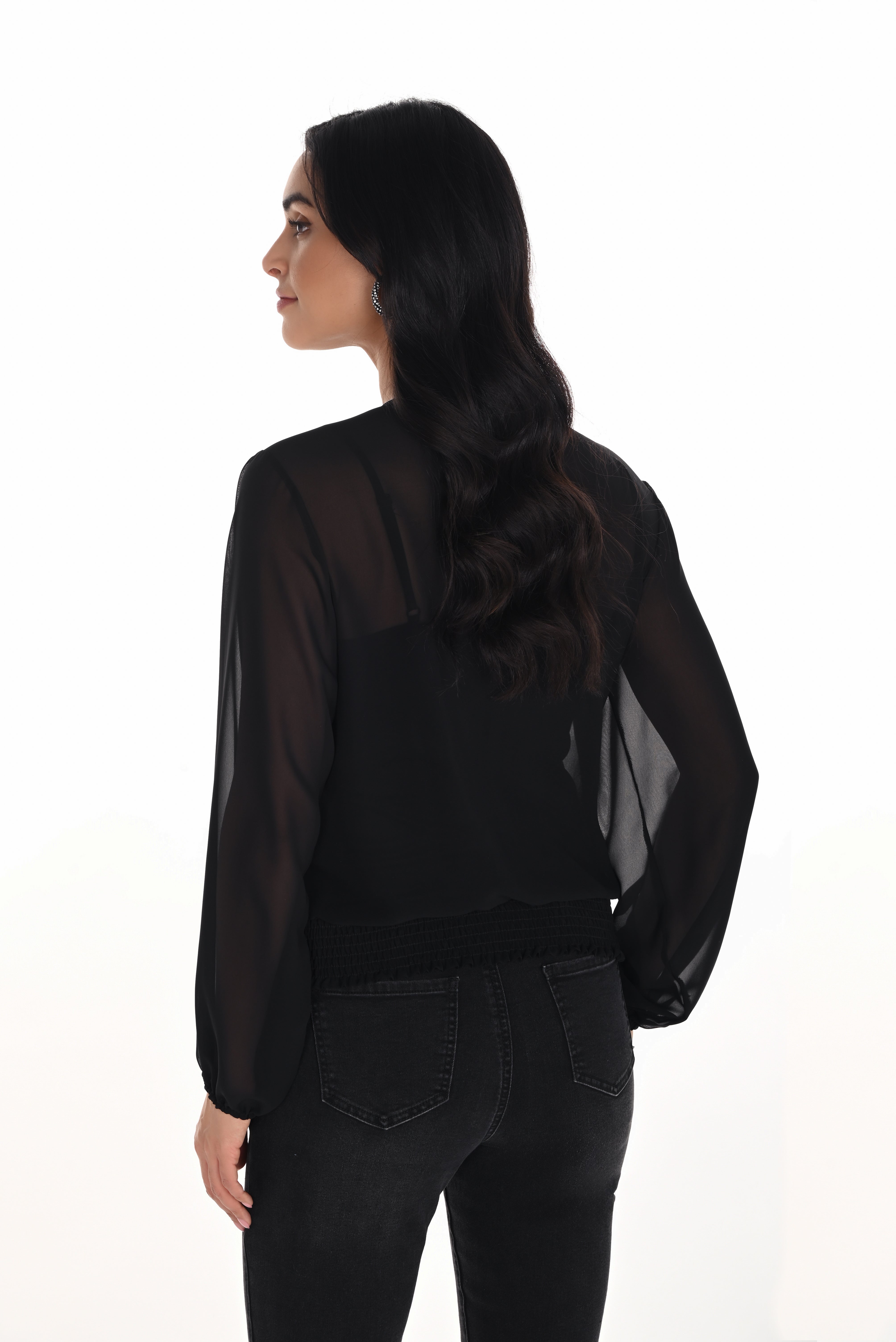 Crossed Neck Long Sleeve Top (243021F25)