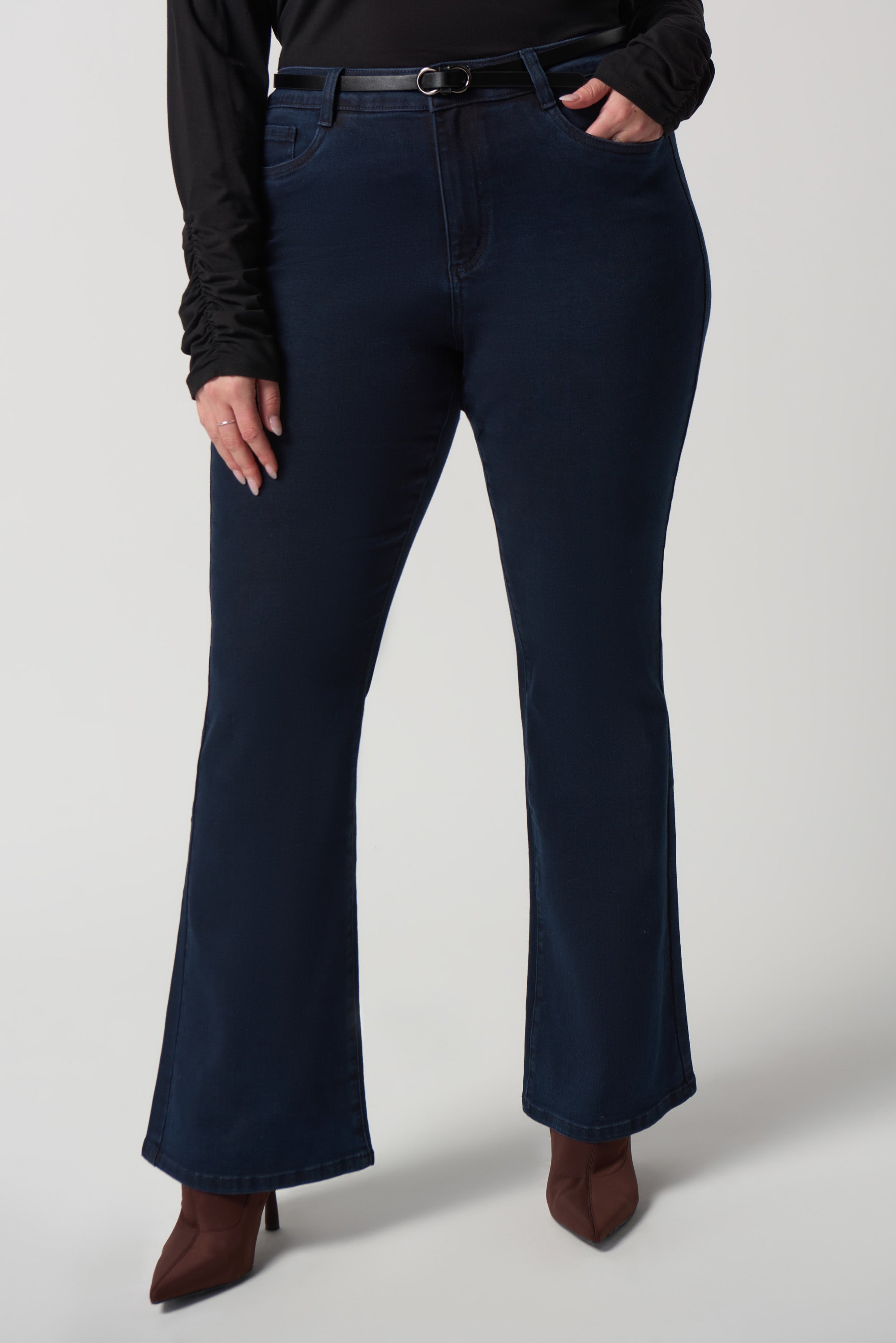 Straight Crop Denim Pants with Sequin Trim (244948F25)