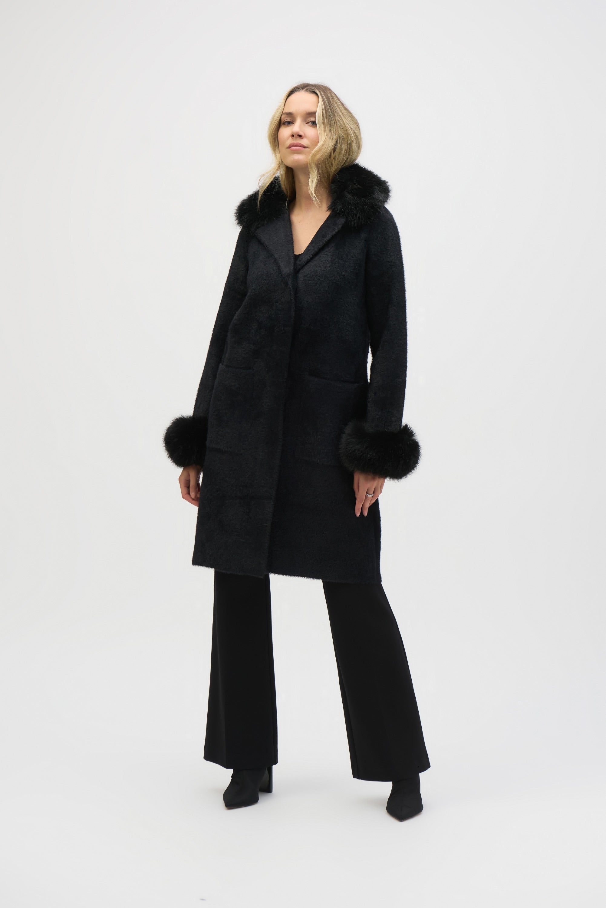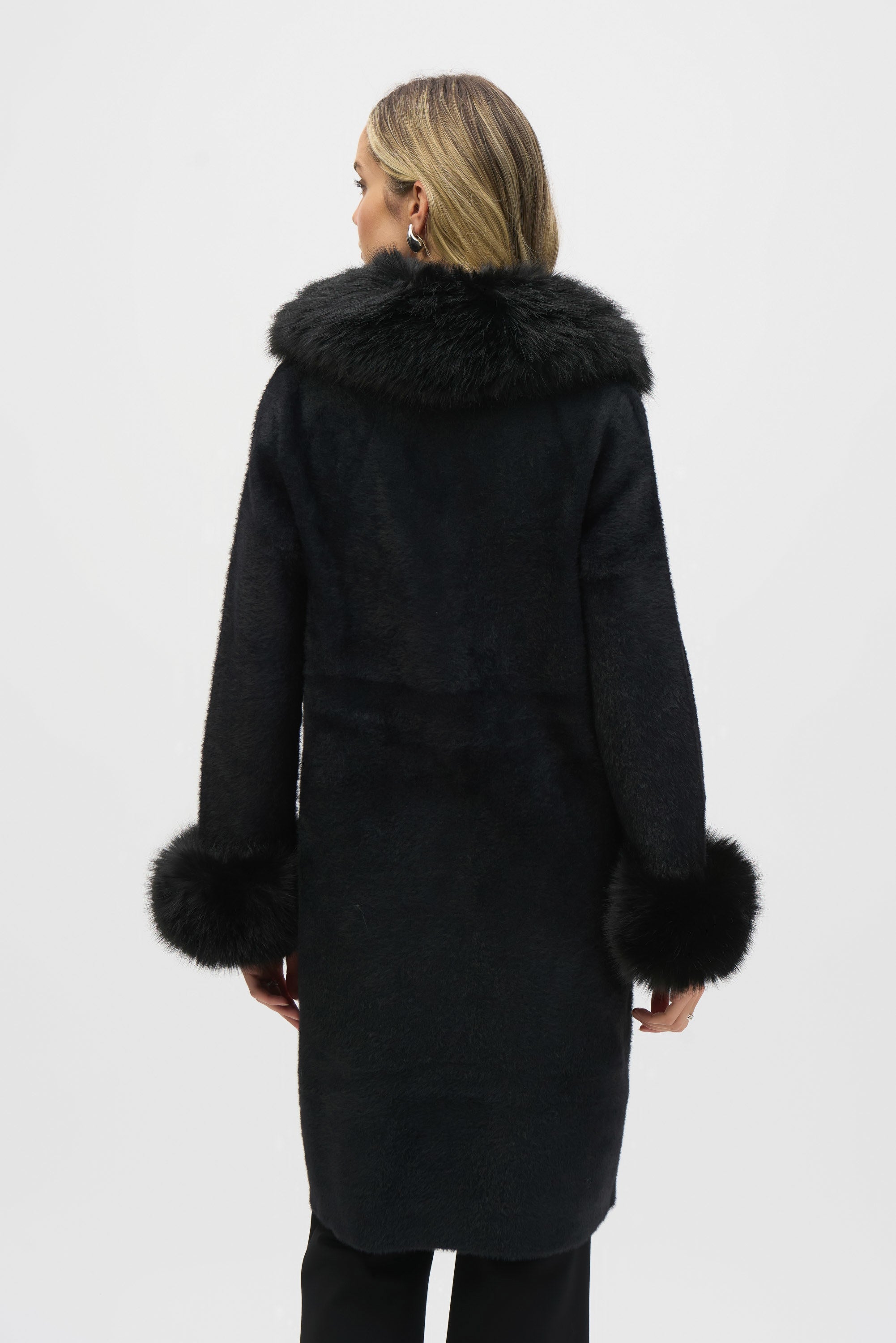 Feather Yarn and Faux Fur Sweater Coat (243923F25)