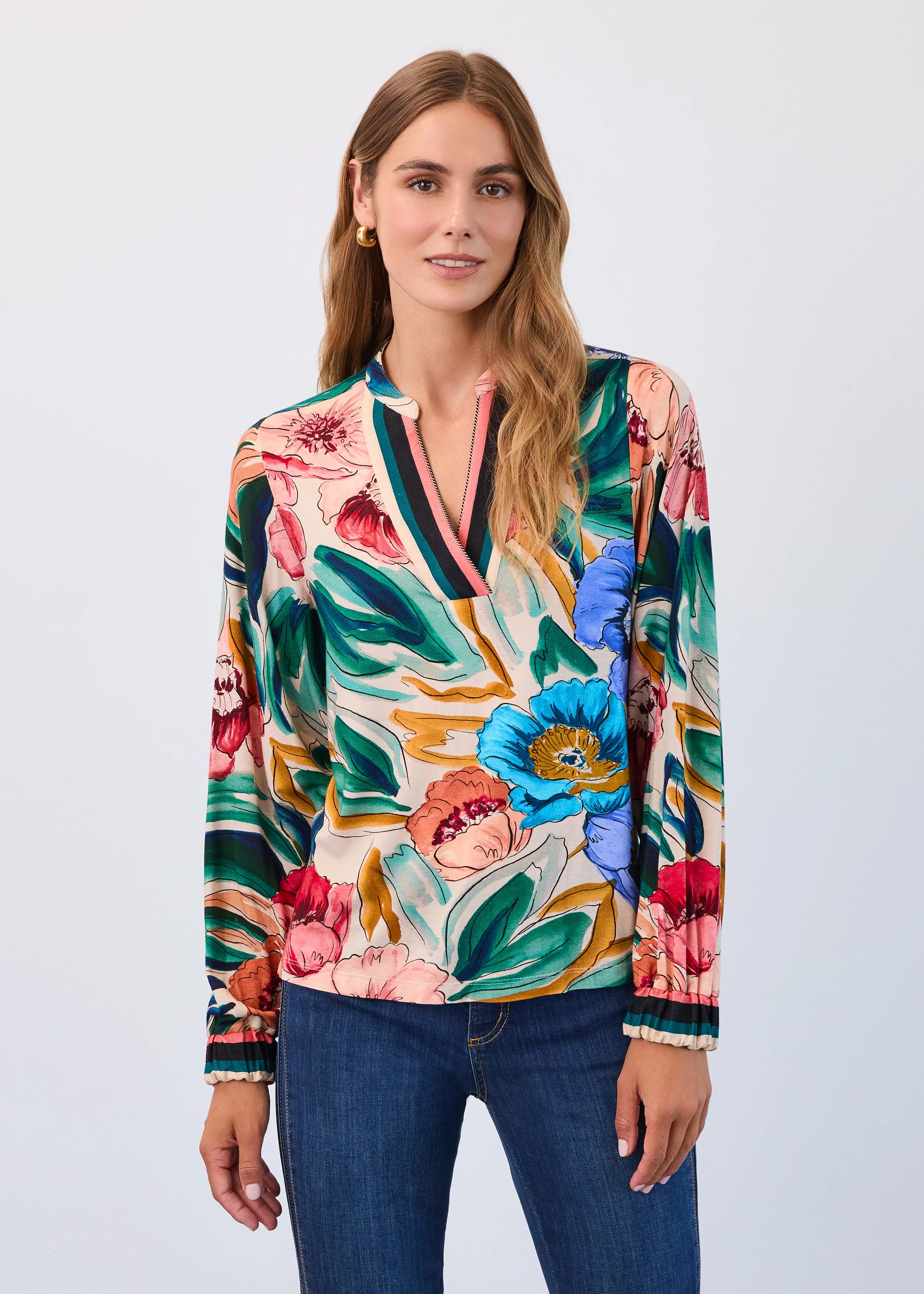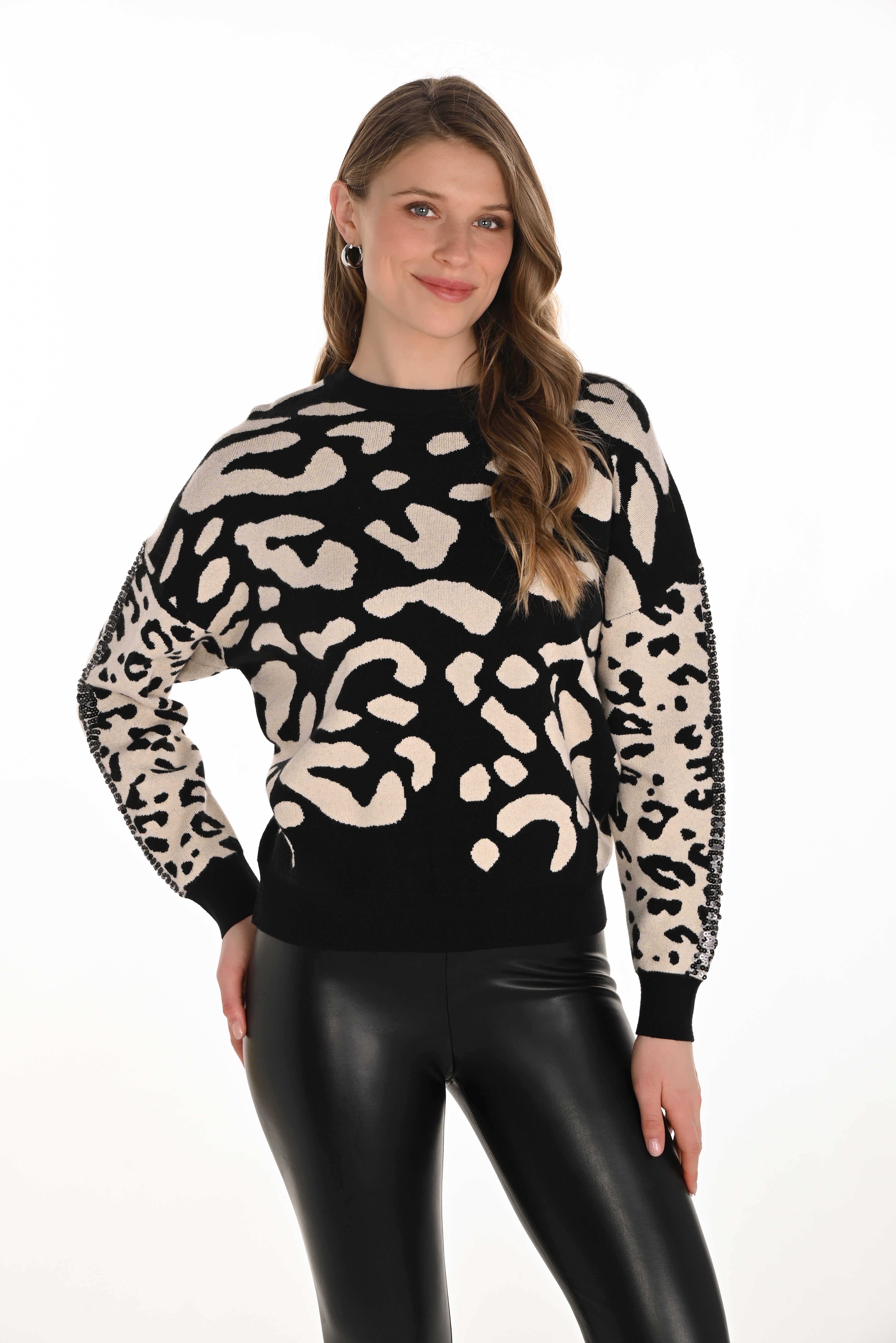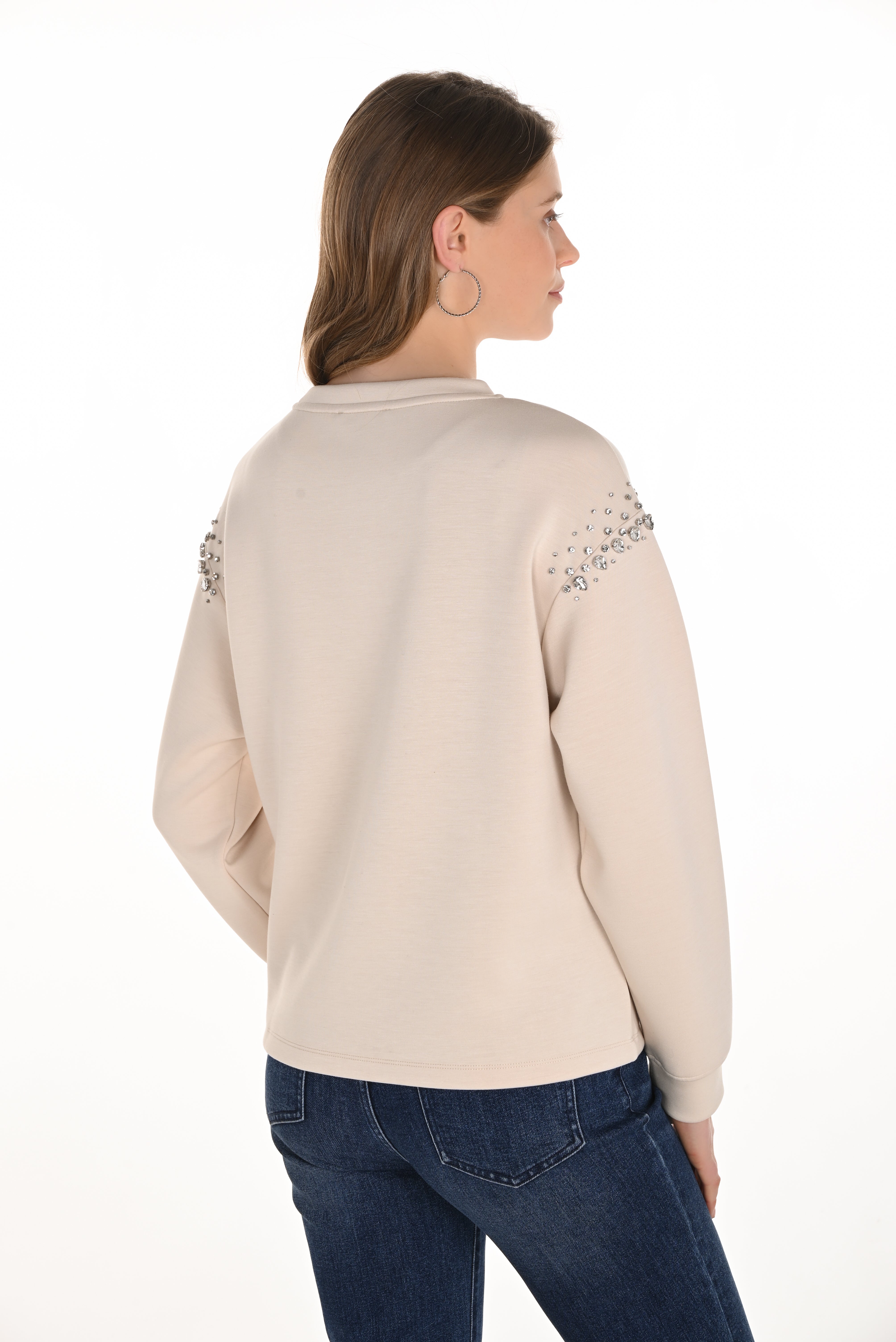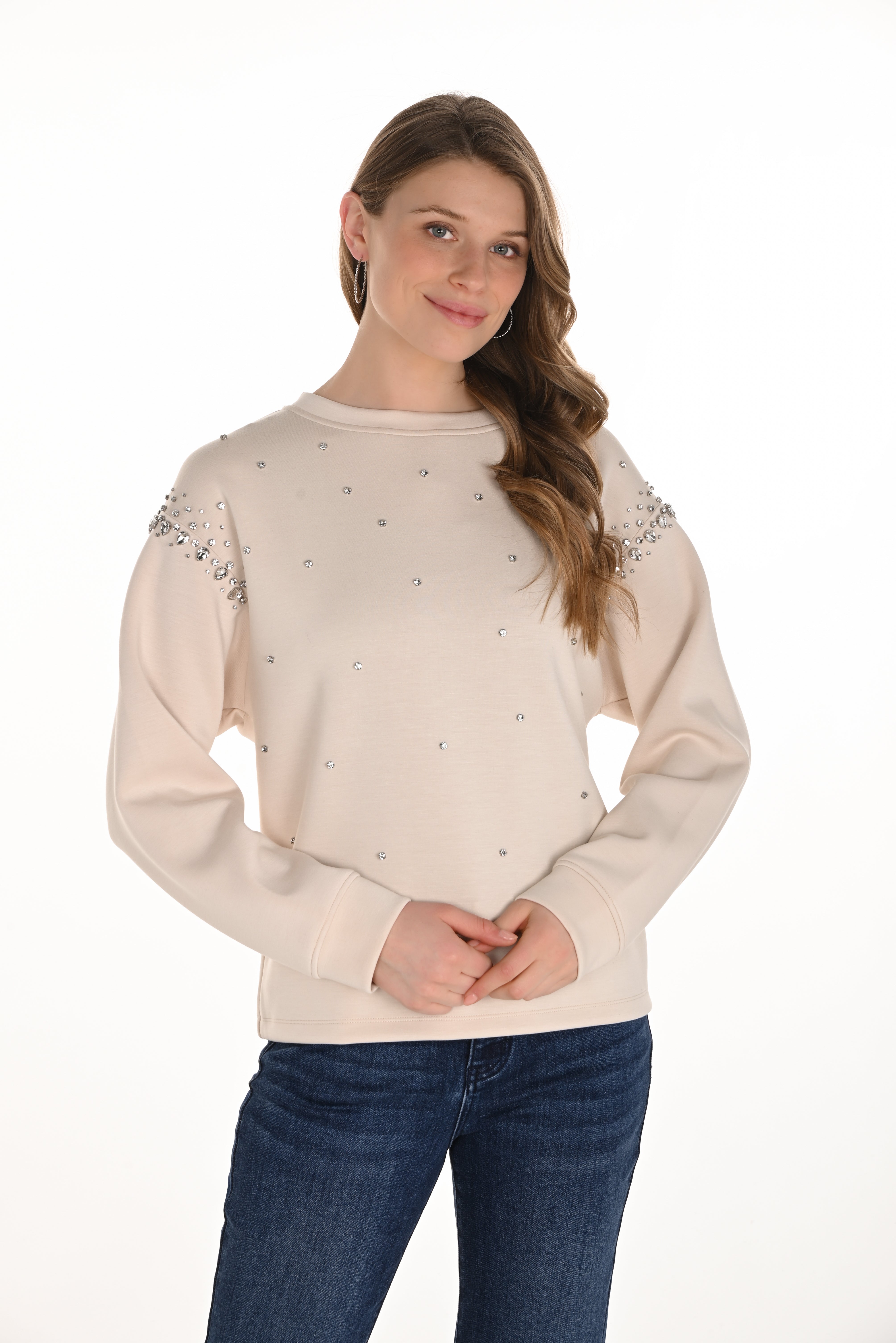 Long Sleeve V Neck Top with Crystal Detail (244613F25)